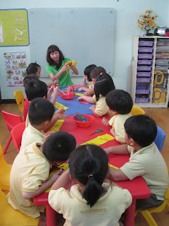 Khâu "chuẩn bị" được lớp mình làm từ chiều hôm trước , tô màu cho các tờ giấy trắng thành những tờ giấy màu "rực rỡ" ;-)