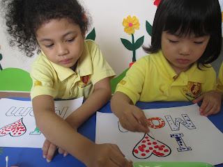 Hôm nay các bé lớp K1 cùng làm thiệp tặng mẹ nhân này lễ này nhé.